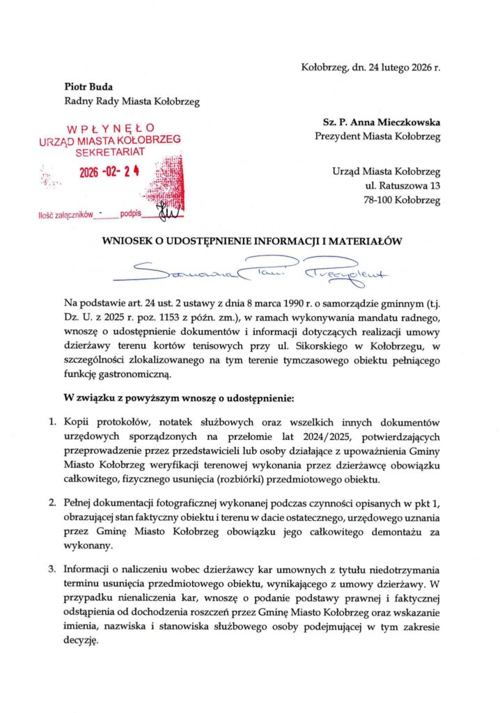 Zasady w Kołobrzegu muszą być równe dla wszystkich. Umowy z Miastem to nie jest plastelina, którą można dowolnie ugniatać po przetargu!